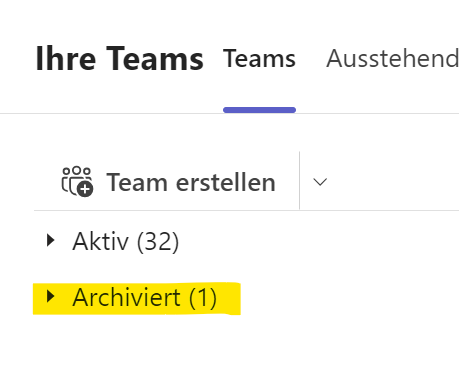 Wo sind die archivierten Teams im MS Teams zu finden?